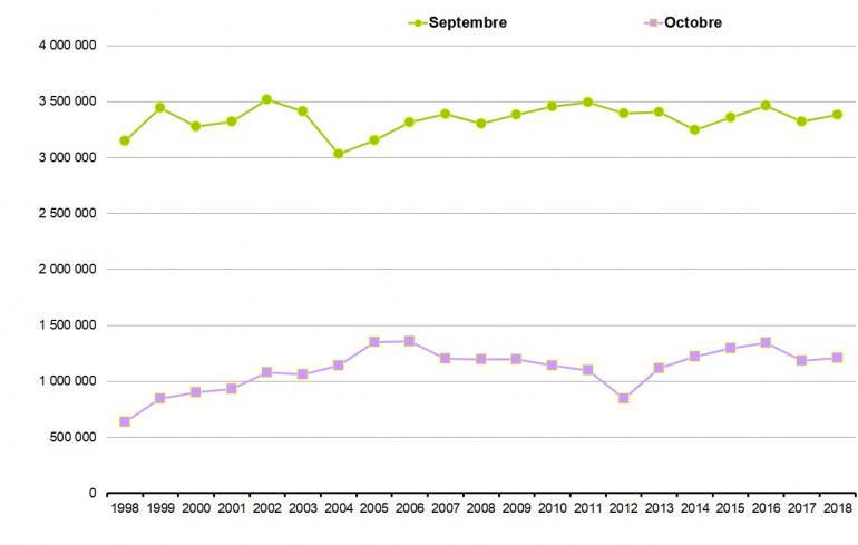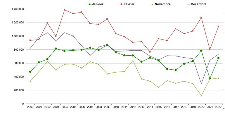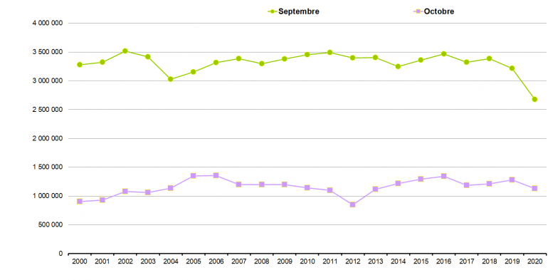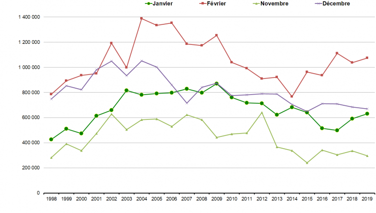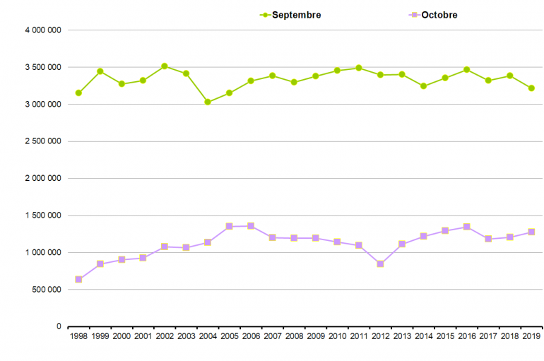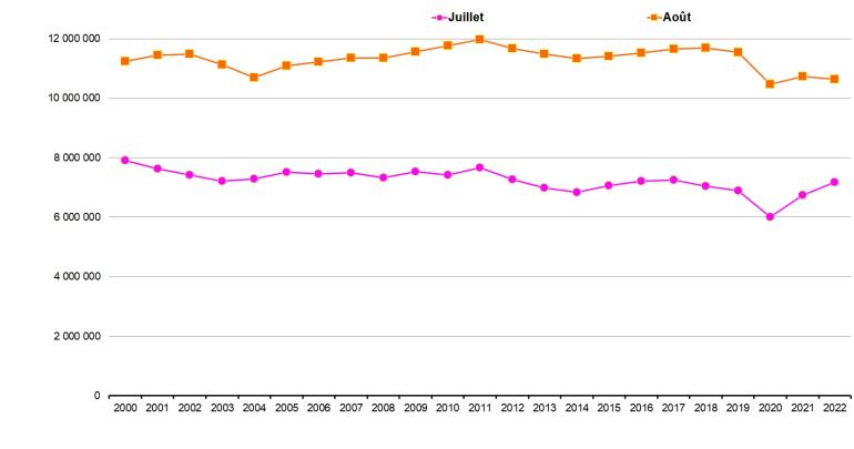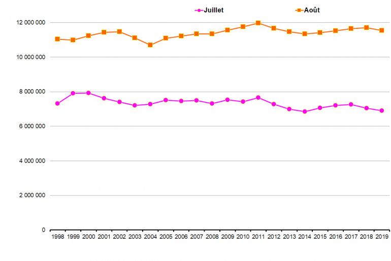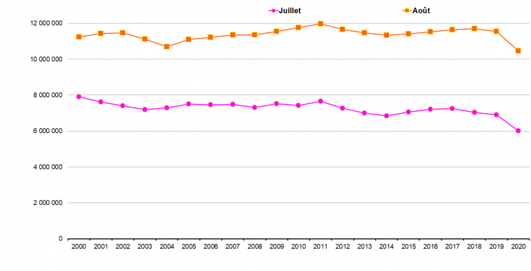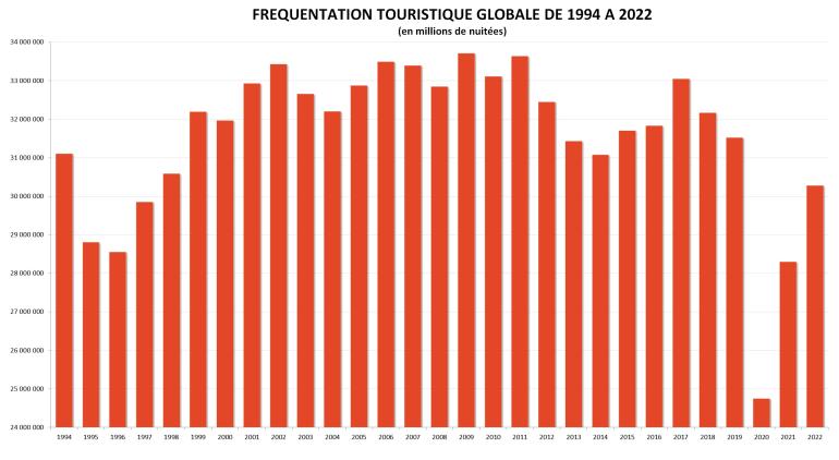 - -1,80% de fréquentation, soit -544.000 nuitées