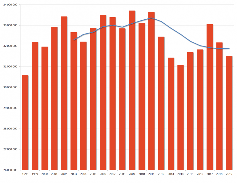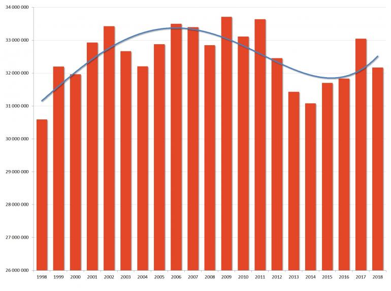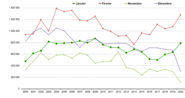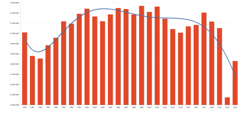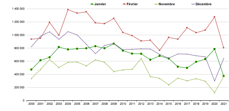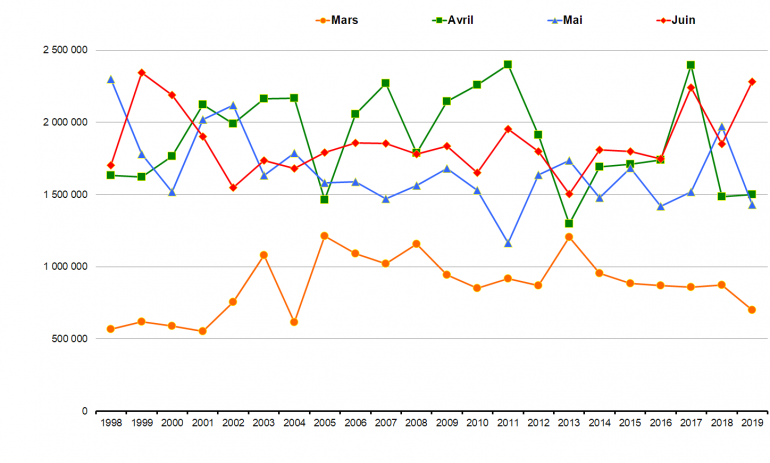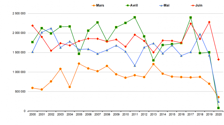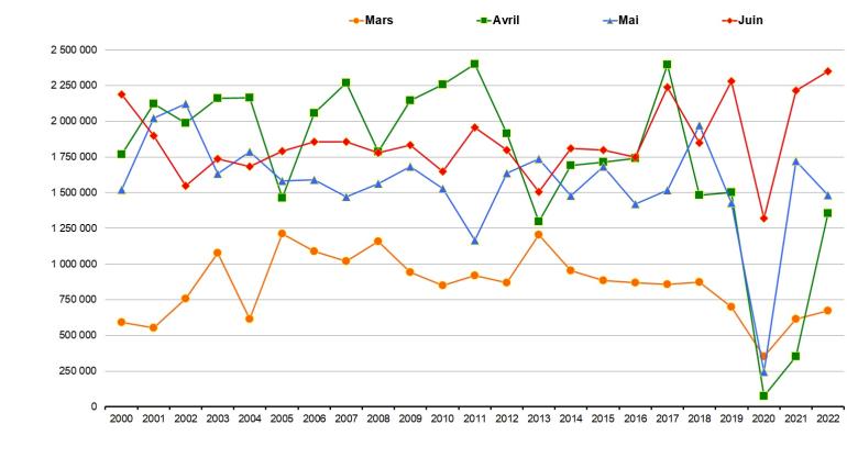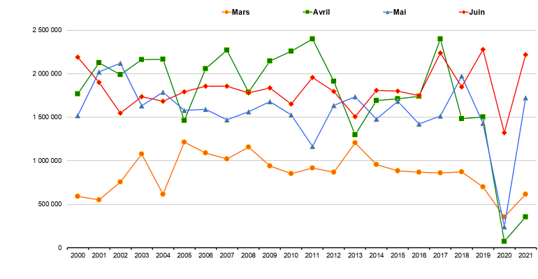 - -1,80% de fréquentation, soit -544.000 nuitées