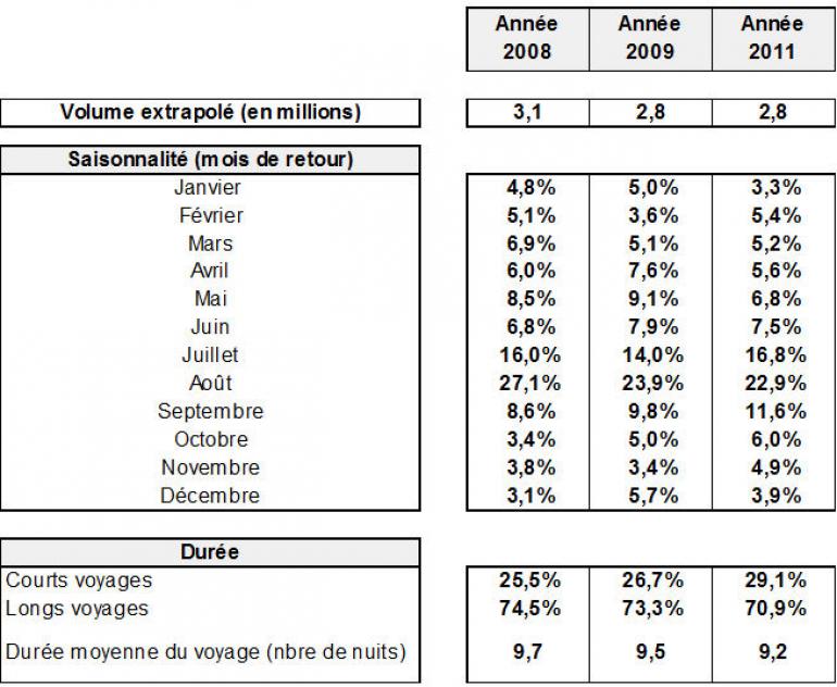 96,3% des voyages et 99% des nuitées sont réalisés pour motif personnel, des proportions au-dessus de la moyenne nationale (89,2% et 93,4%).