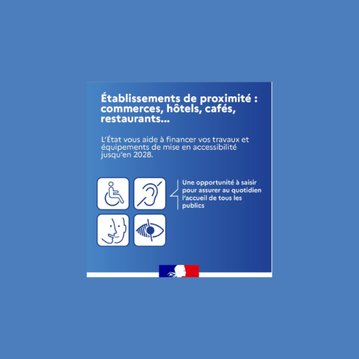 Avec une enveloppe de 300 millions d’euros sur 5 ans, l’État vous aide à financer vos travaux et équipements de mise en accessibilité.